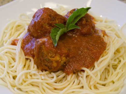 As some of you may know, I have been on a diet of 1200 calories per day for about a month now. The good news is – I’ve lost 5 pounds! And not just 5 water weight/bloating pounds either, these are 5 real, fat-has-been-burned-off pounds that has not returned despite my monthly weight fluctuations. Yay! Now, the bad news is that it isn’t always easy to find foods that will satisfy that craving for carbs (noodles, rice, bread) and still stay within the calorie limits, but I have been able to created a few dinner entrees that can satisfy that need and are under 500 (yes 500!) calories. Last night I made a delicious bowl of pasta with three huge turkey meatballs and tomato sauce for just 450 calories!