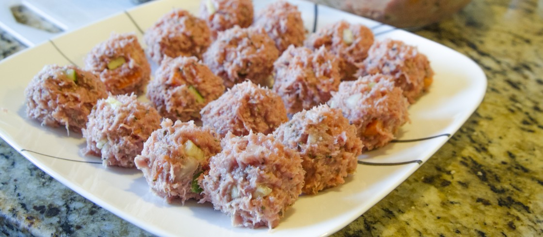 In a large bowl, mix turkey, panko, carrots, zucchini, onion, eggs, Italian seasoning, and salt until well combined; form into 1-inch balls.
