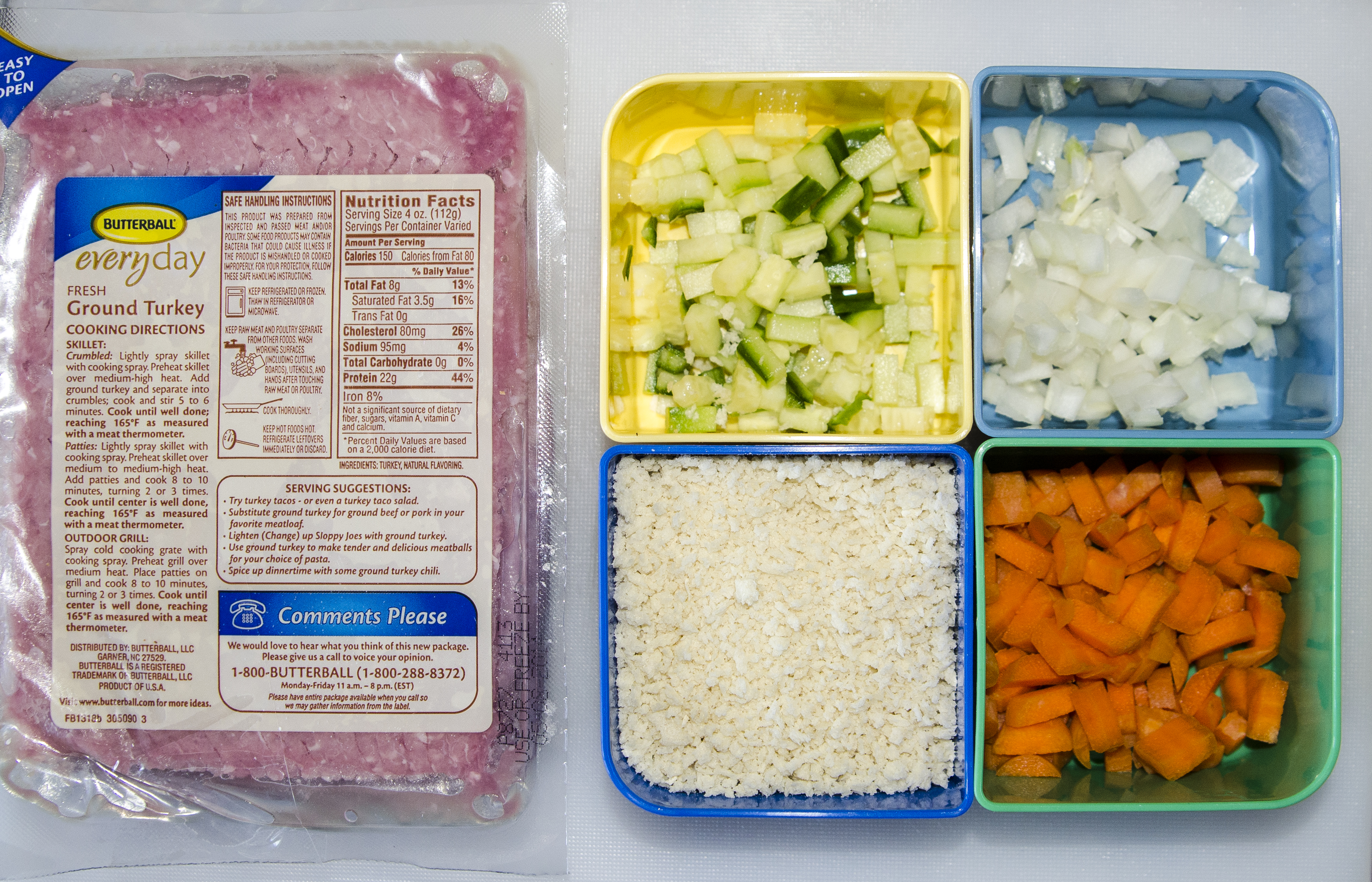 The great thing about ground turkey is that it is an incredibly versatile meat – it takes on any spices or flavors added to the meat elegantly, and adds a slight sweetness that is reminiscent of ground pork. A meat that can be made to taste like pork for 1/2 the calories and 1/3 less of the fat…yeah I’ll get that!