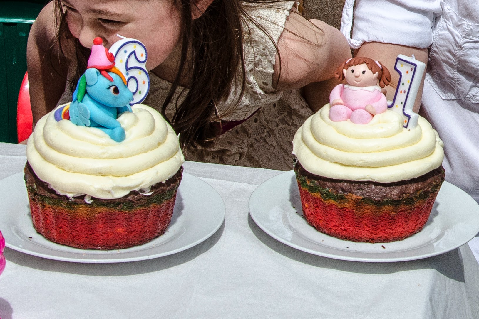 We came up with the rainbow theme because Audrey loves Rainbow Dash from My Little Pony. But since the party was also for Camille I wanted to make it about rainbows. And of course the first thing I did was think of all the rainbow themed foods I wanted to make. And no, we don’t have 30 tiny chairs. I called a local party rental place for most of the furniture at the party. Here are some photos from the party and scroll down for the recipes.